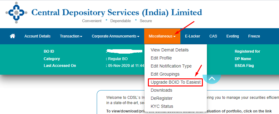 - Log in to Myeasi by visiting https://web.cdslindia.com/myeasinew/home/login